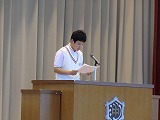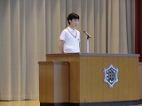 1学期が終了しました。学習に部活動に大潟町中生徒は頑張りました!明日から始まる夏休みでは充実な生活を送り、さらに成長した姿で2学期を迎えてくれることを期待しています。各学年から代表して3人の生徒から「1学期の反省」を述べてもらいました。きりっとした堂々な姿勢で発表していました。