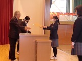 高田地区納税貯蓄組合連合会主催の税に関する作品(作文)に3名の生徒が賞に入りました。連合会会長の横瀬和夫 様からお越しいただき、直接表彰をしていただきました。